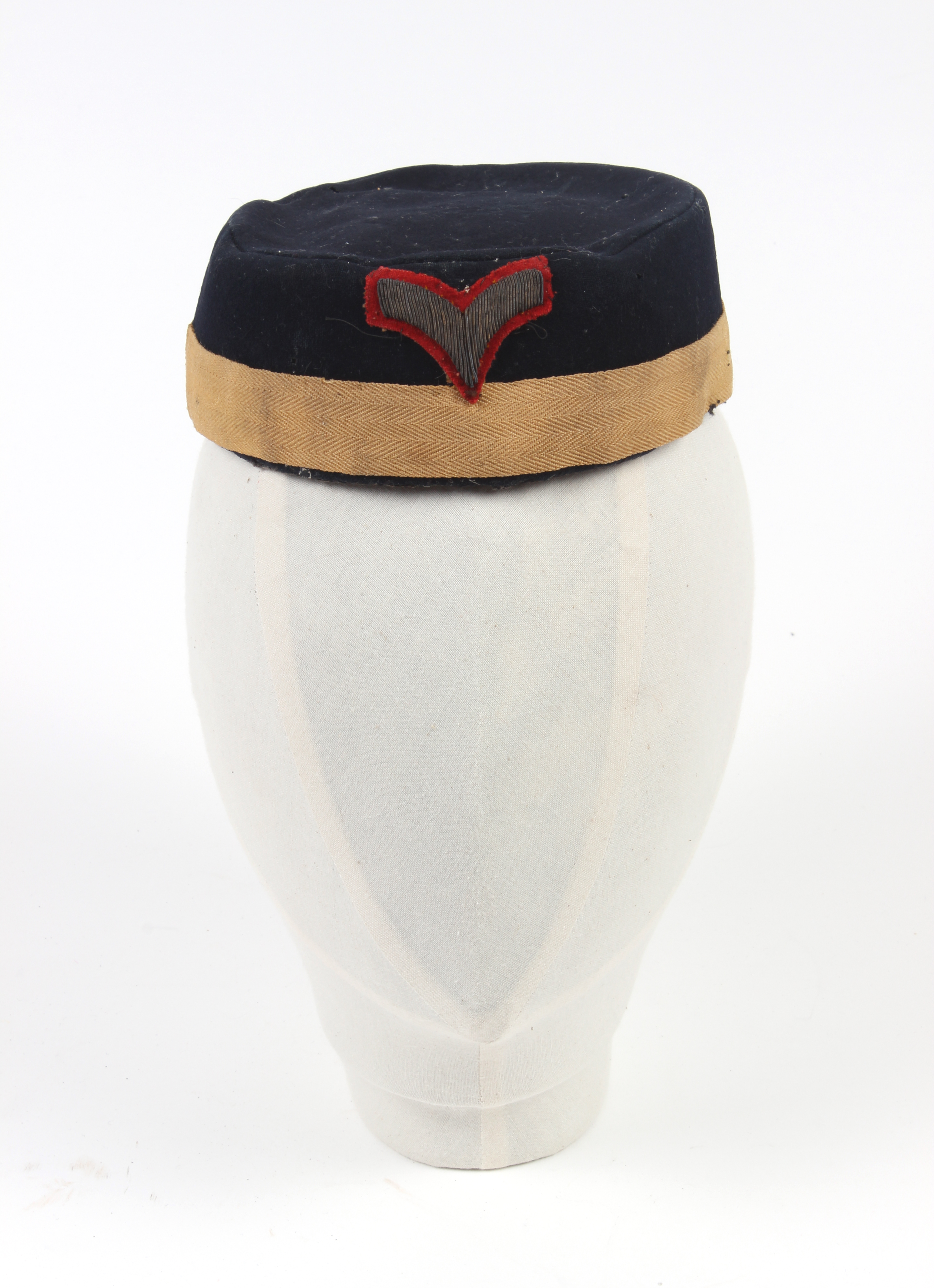 English: Forage cap (pillbox) part of Volunteer uniform NZGAV - 2nd Auckland Company - Auckland Garrison Artillery Battery Sergeant Lewis George Sheppard white cloth cover |