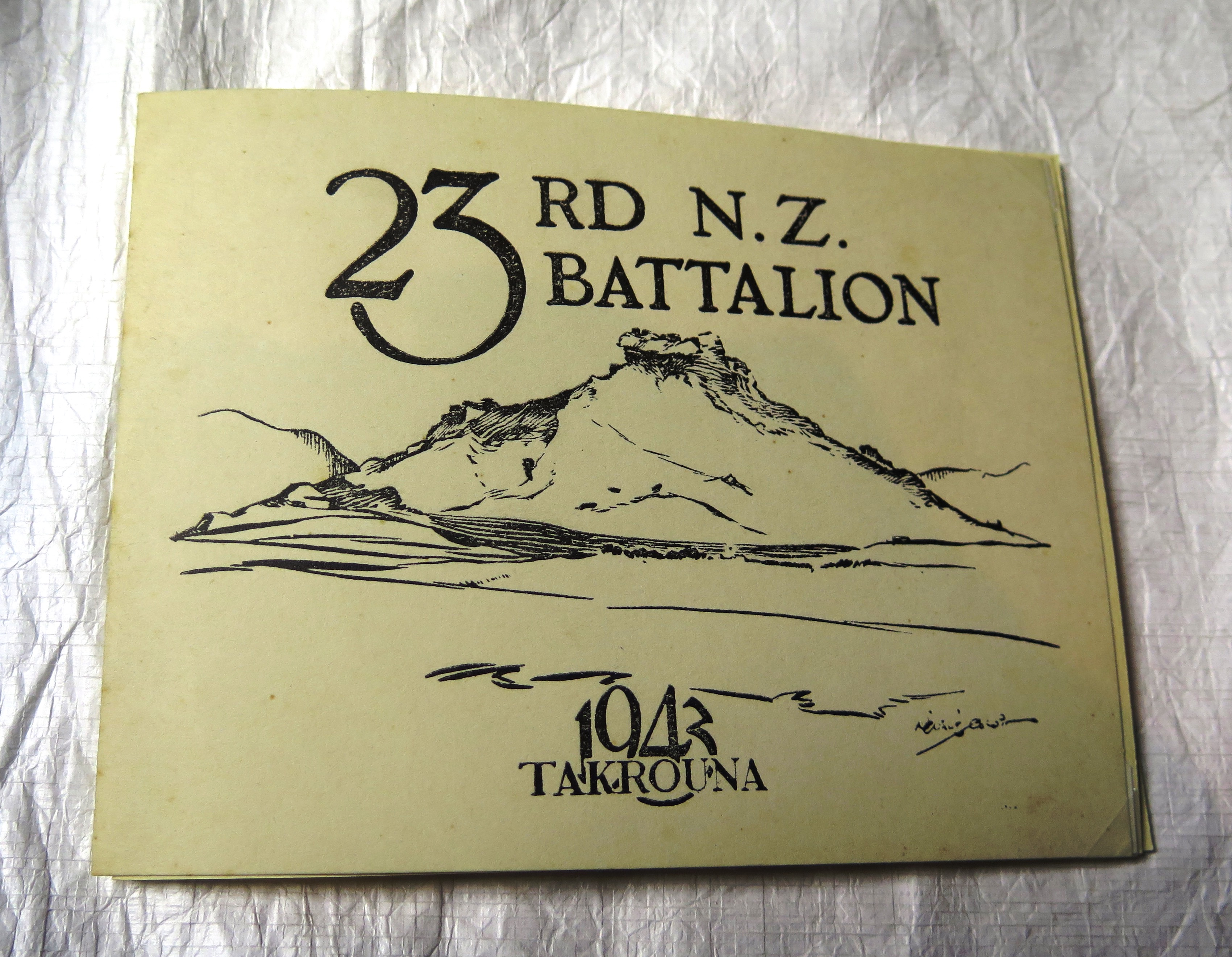 English: Christmas Card, 23rd NZ Battalion, 1943, Takrouna, North Africa, WW2 markings- inside "TO PAT - FROM .- 10780 - JR- D COY, 23 BN, 2 NZEF MEF 12 OCT 43"