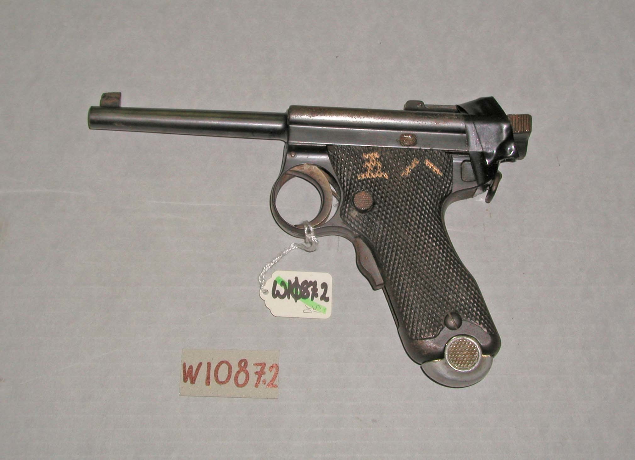 Japanese Nambu 1904 model semi-automatic pistol (WW2) manufacturer Japan, Koishikawa arsenal, c.1920s Specific history not known |
