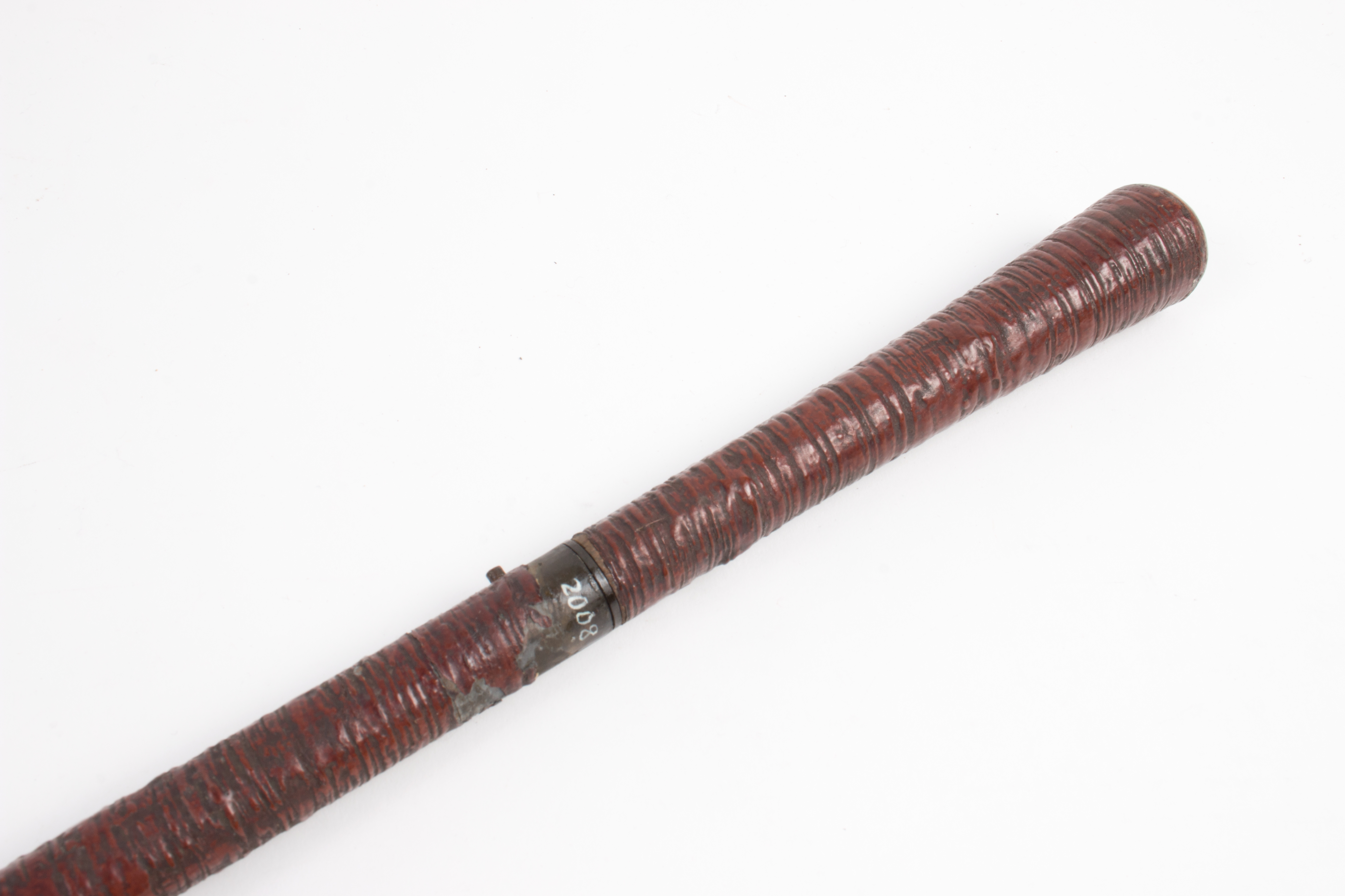 English: English sword stick, belonged to Fowlds family dark red twisted leather covering; spring in handle of stick releases short sword